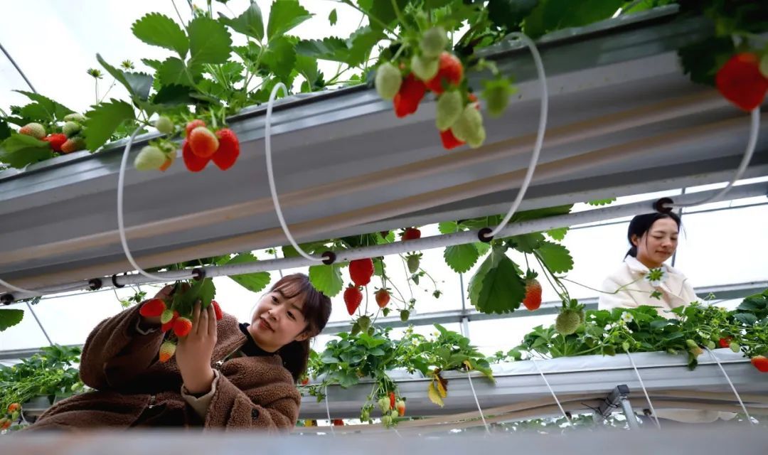当天,在甘州区靖安乡草莓庄园内,游客带着孩子体验采摘乐趣,了解草莓生长过程、参观农耕文化展,“围炉煮茶”品味浓浓乡愁、品尝农家饭,尽享田园慢生活。