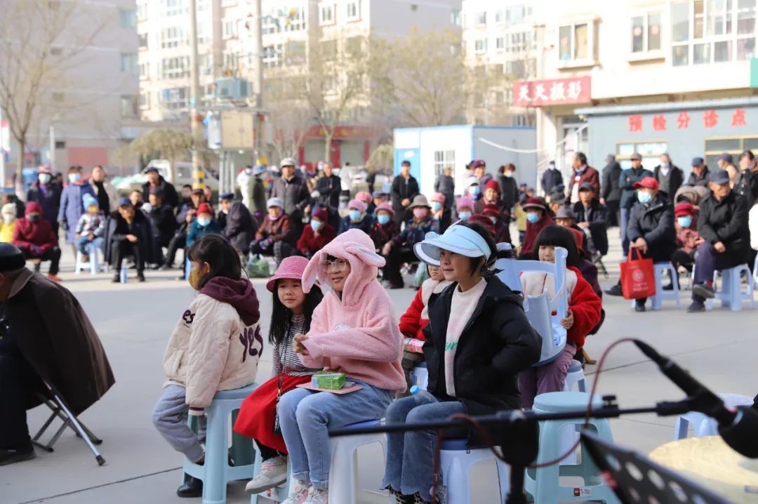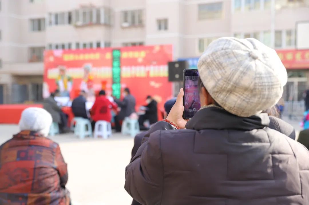 随着锣鼓声响起,居民们相互招呼、闻声而来,大家汇拢在小广场上,将舞台围了个里三层外三层,不能错过家门口“看戏”的好机会。