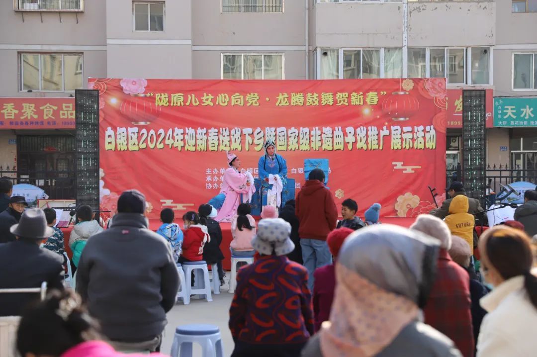 据了解,白银区2024年“迎新春送戏下乡”暨国家级非遗曲子戏推广展示活动由白银区委宣传部、区文旅局主办,区文化馆承办。将陆续走进强湾新村社区、王岘镇东台社区、纺织路街道银馨社区,演出《曲子戏》新创编剧目、新编传统剧目10余出,将非物质文化遗产宣传展示与年俗庆祝活动巧妙结合,让古老的艺术焕发出新时代的魅力,为大家带来一场“过大年、看大戏”的春节文化盛宴,把年味送到老百姓身边。