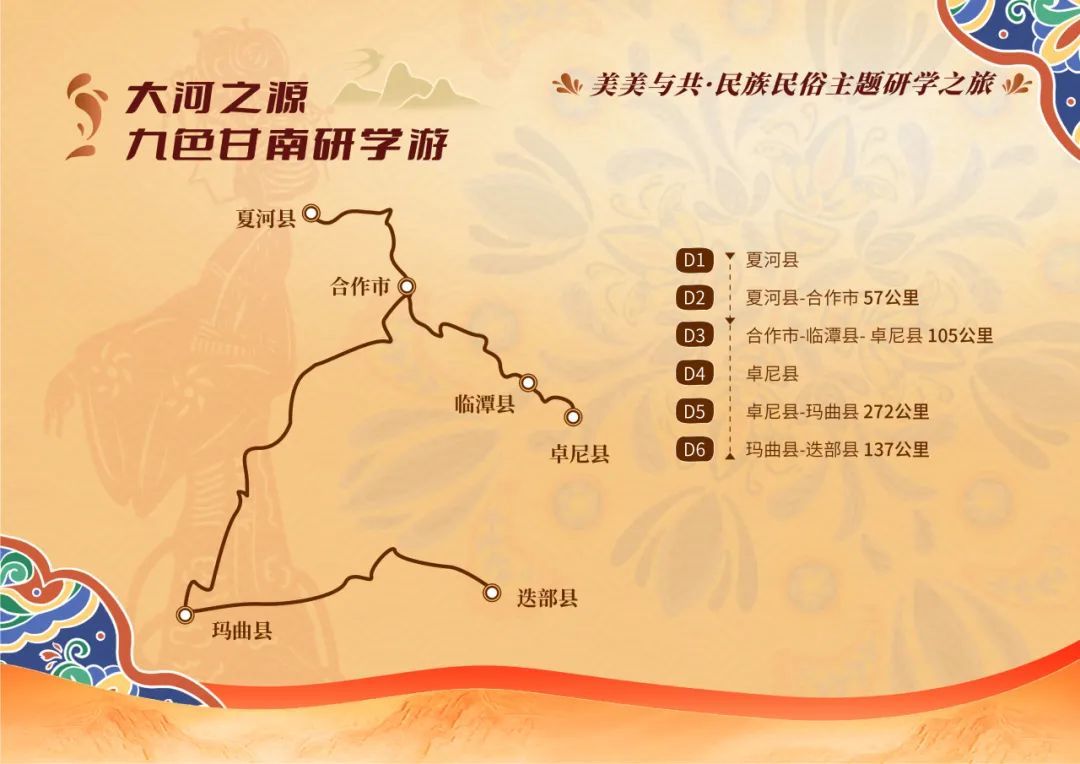 题记:2023年9月27日,甘肃省文化和旅游厅联合酒泉市人民政府、读者出版集团有限公司共同举办“研学丝绸古道·旅行如意甘肃”——2023甘肃研学旅行大会,重磅推出甘肃研学旅行十大主题百条线路千堂课程,着力讲好中国故事甘肃篇章,合力推动甘肃研学旅行干在实处、走在前列、领跑全国。我们将在厅网站、微游甘肃和省内外媒体平台陆续刊发甘肃研学旅行十大主题百条线路千堂课程详细内容,通过图文、视频等形式予以生动呈现,欢迎广大莘莘学子和入甘游客走进“如意甘肃”,实现研有所值、学有所思、旅有所乐、行有所获!本期集锦展示的主要内容为“美美与共·民族民俗主题研学之旅”中主推的线路课程:大河之源·九色甘南研学游。