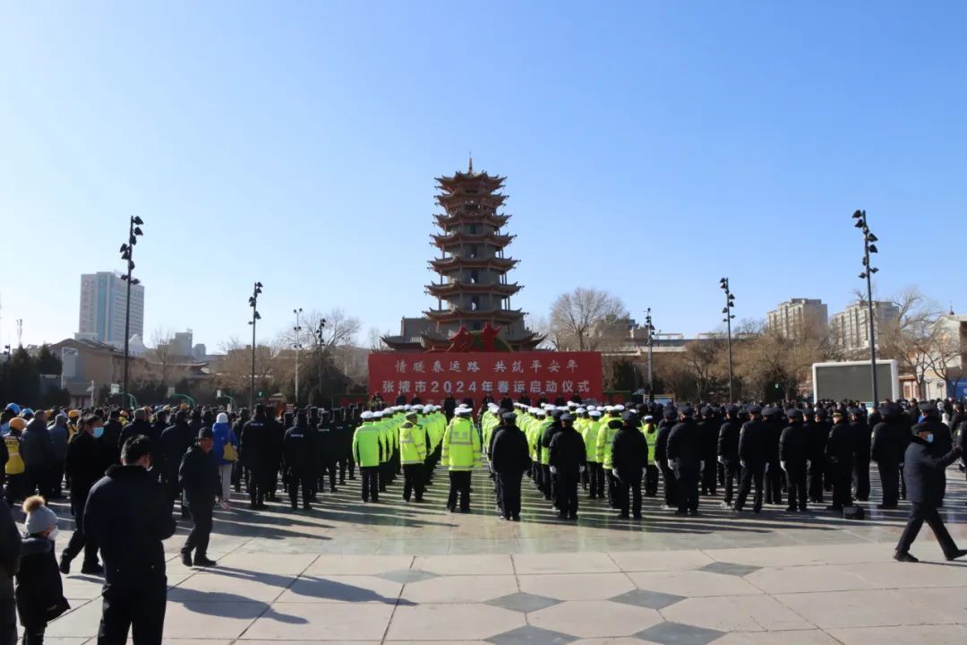1月25日下午,张掖市举行2024年春运启动仪式,全面部署2024年春运道路交通管理工作,为人民群众平安返乡、欢度春节、安全返程创造良好的道路交通环境。