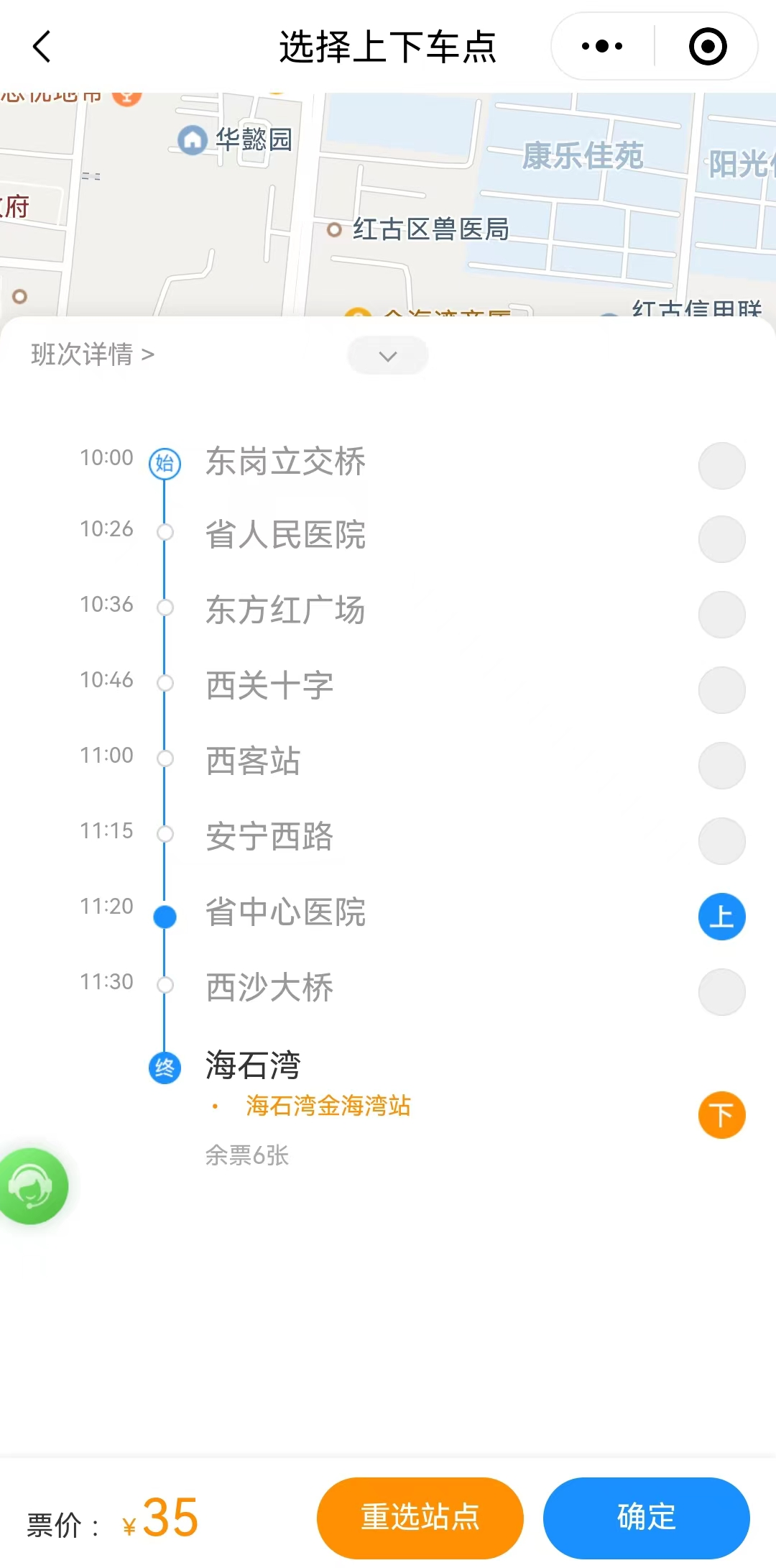 第二步:选择出行线路、出行时间、上下车地点,确定支付即可完成预约。