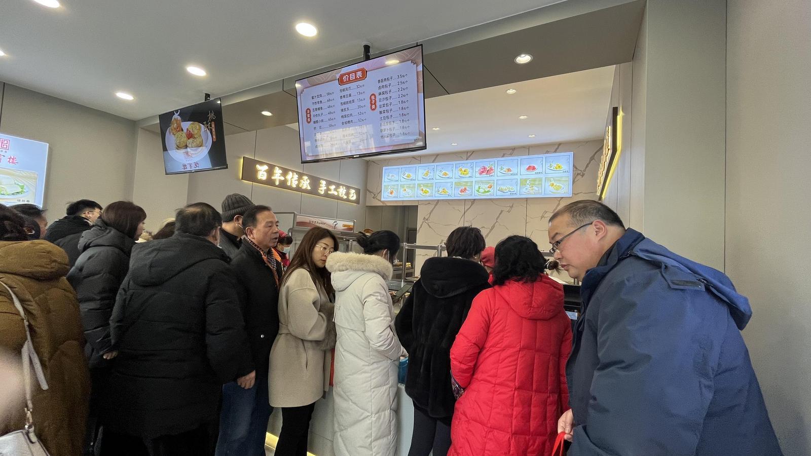 在国芳综超广场店,很多市民正在选购半成品年菜,该店店长高云芳告诉记者,“八宝饭和糟肉等年菜卖得不错,油果子每天能卖三百多斤。”