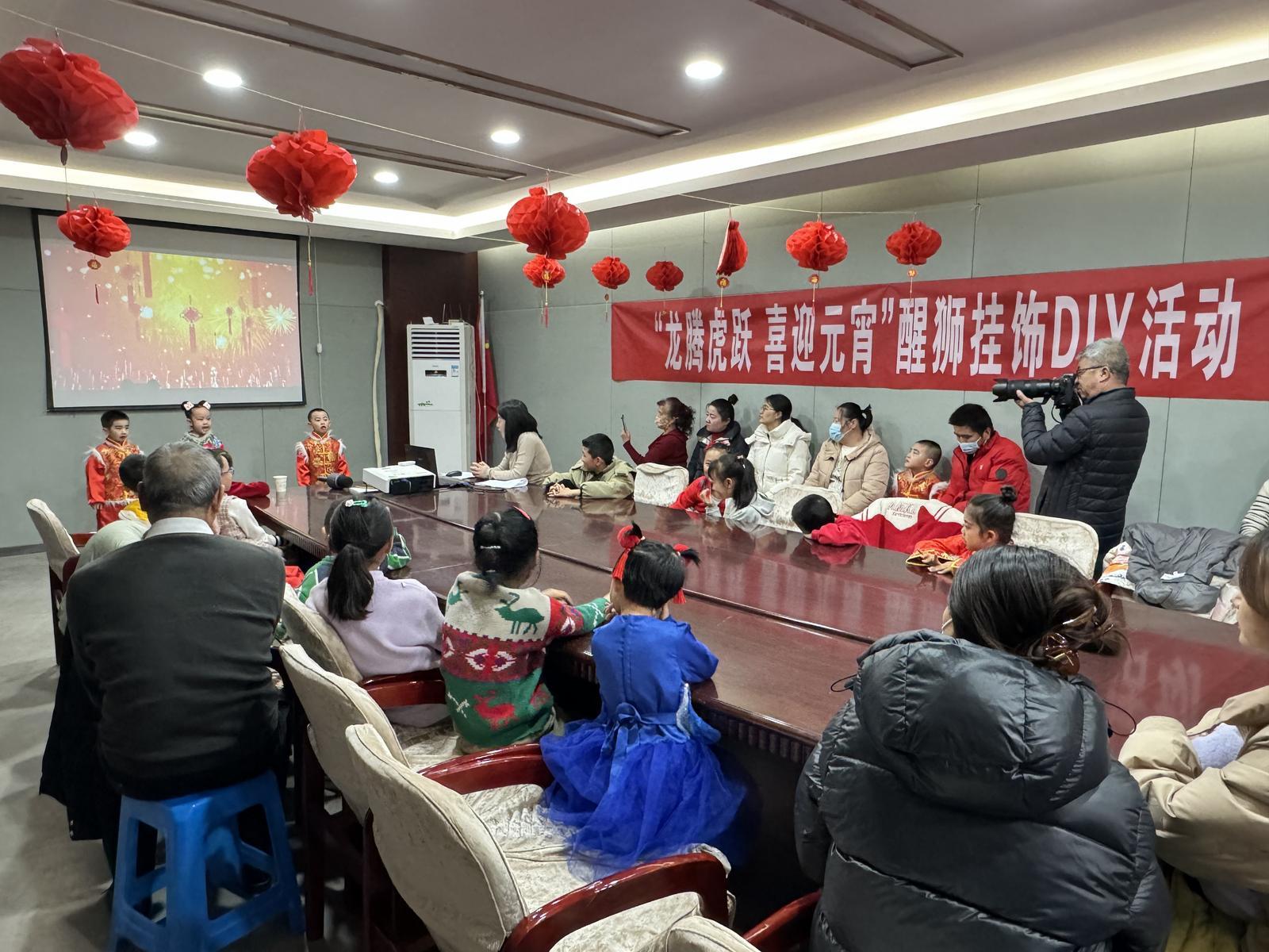 醒狮,寓意着消灾除害、求吉纳福、吉祥如意的美好意愿,寄托了人们对幸福生活的向往。活动开始,小朋友们和大学生志愿者为大家带来了精心编排文艺节目,赢得了现场家长们阵阵掌声。活动中,指导老师向小朋友们介绍了讲解了龙年的美好寓意和元宵节传统习俗,通过成语接龙带有“龙”字成语小朋友们踊跃回答,现场气氛瞬间活跃起来。手工制作开始前,老师详细介绍了醒狮福字挂饰的制作步骤和注意事项,随后将制作材料分发给每个小朋友,在家长们的协助下,迫不及待地开始了自己的创作。