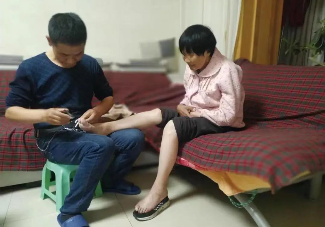 2019年2月25日,母亲突发急性脑梗,在金昌市中心医院抢救了12天,命是保住了,可因为梗死面积太大,母亲瘫痪了。当医生告知病情时,犹如晴天霹雳,就连很多亲戚朋友都劝闫明成放弃。但是闫明成和他的家人却没有放弃,一年多来,母亲反复住院,经常进行针灸、理疗、各种康复训练,他不顾身体劳累,白天上班,晚上在医院看护母亲。母亲在医院住怕了,他和妻子就把母亲接回家,按照医生指导,他们学会了康复训练基本要领,坚持每天给母亲按摩,帮助母亲进行康复训练。