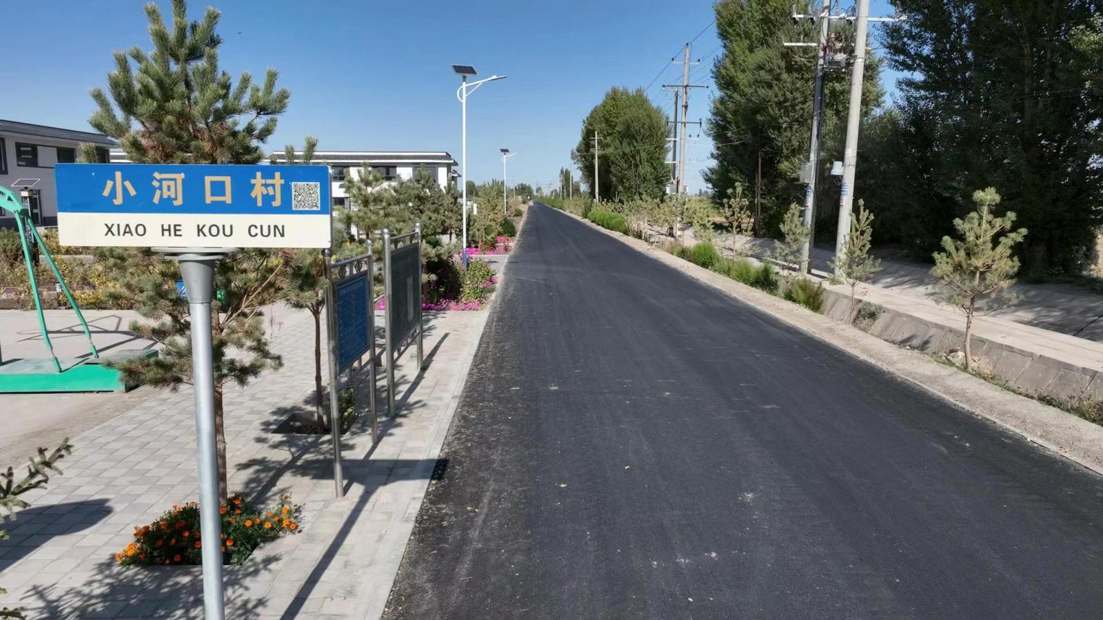 走进金塔县东坝镇小河口村,一条乌黑油亮的柏油路直通村内,为美丽乡村增添了一抹别样的风景。