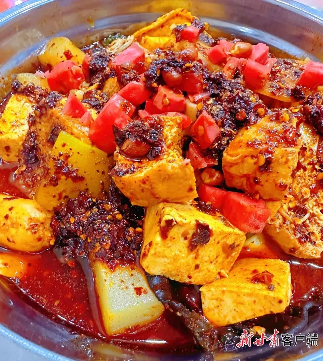 纬度高、日照强的环境,造就了甘肃定西这处“中国马铃薯之乡”,定西的土豆(又叫洋芋),某种程度上代表着土豆口感的最高标准。甘肃人使出各种花样,把一颗颗洋芋安排得明明白白,洋芋擦擦、洋芋搅团、洋芋酿皮……由土豆淀粉加工出的土豆粉,同样称霸着餐桌,成为甘肃麻辣烫不可或缺的主食担当。