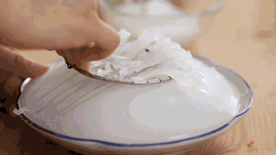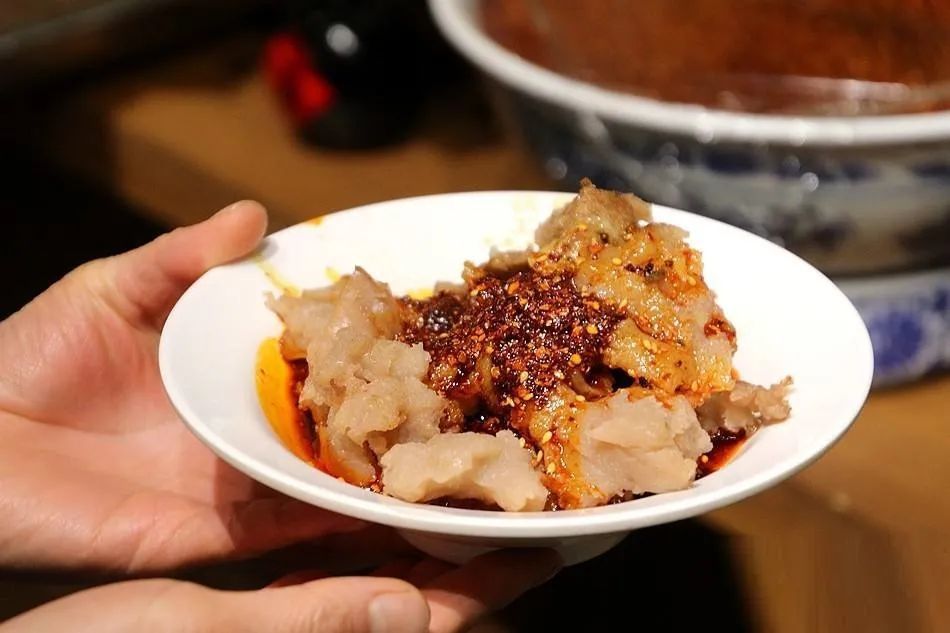 倒入醋汁、拌上芝麻酱,最后再来勺辣椒油