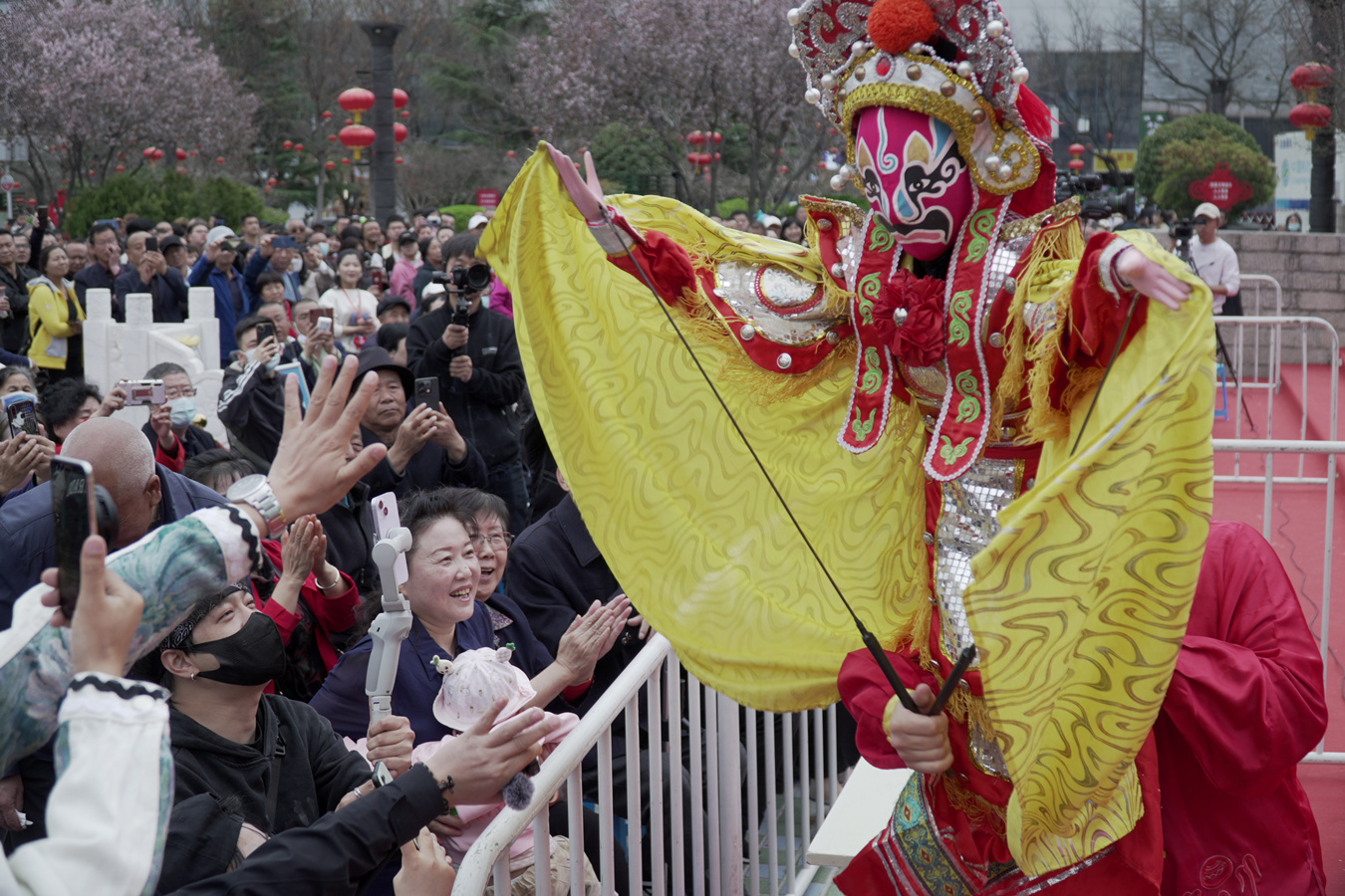4月1日,“如意甘肃·多彩非遗”——2024年“我们的中国梦——文化进万家”全省非遗展演活动、甘肃特色美食大PK活动、甘肃文创非遗市集展销活动等各项文旅活动和特色展演持续开展。临夏花儿、崆峒武术、文县琵琶弹唱等特色节目展演加持助力。甘南州临潭县赴天水开展了助力“天水麻辣烫”文艺演出活动,继续为天水加一把火。更值得一提的是,天水麻辣烫登上CCTV3综艺频道《开门大吉》节目,更是为天水上大分。(图丨孙学兆)