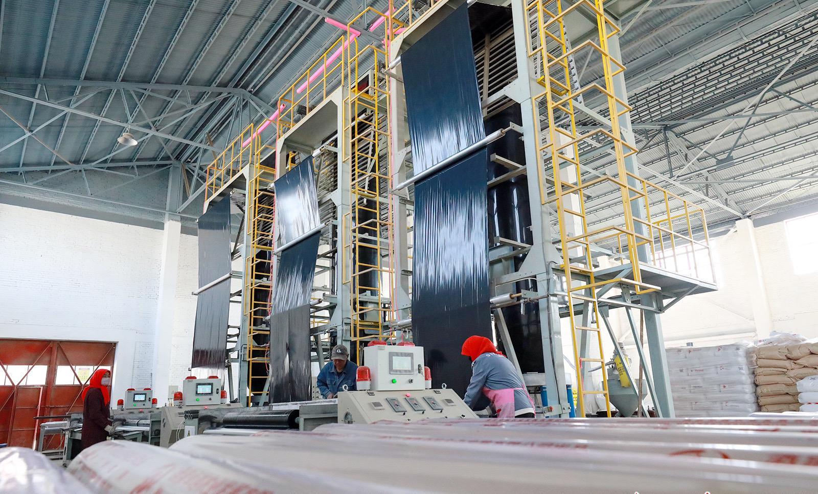 三春生产正当其时,位于金塔县城郊的金塔县民富地膜厂生产车间里3条自动化生产线全力运行,薄膜挤压吹塑机上,一卷卷吹塑成型的优质农用加厚高强度地膜源源不断地产出,这些地膜将在经过相关部门工作人员抽检合格后打包发往各乡镇。
