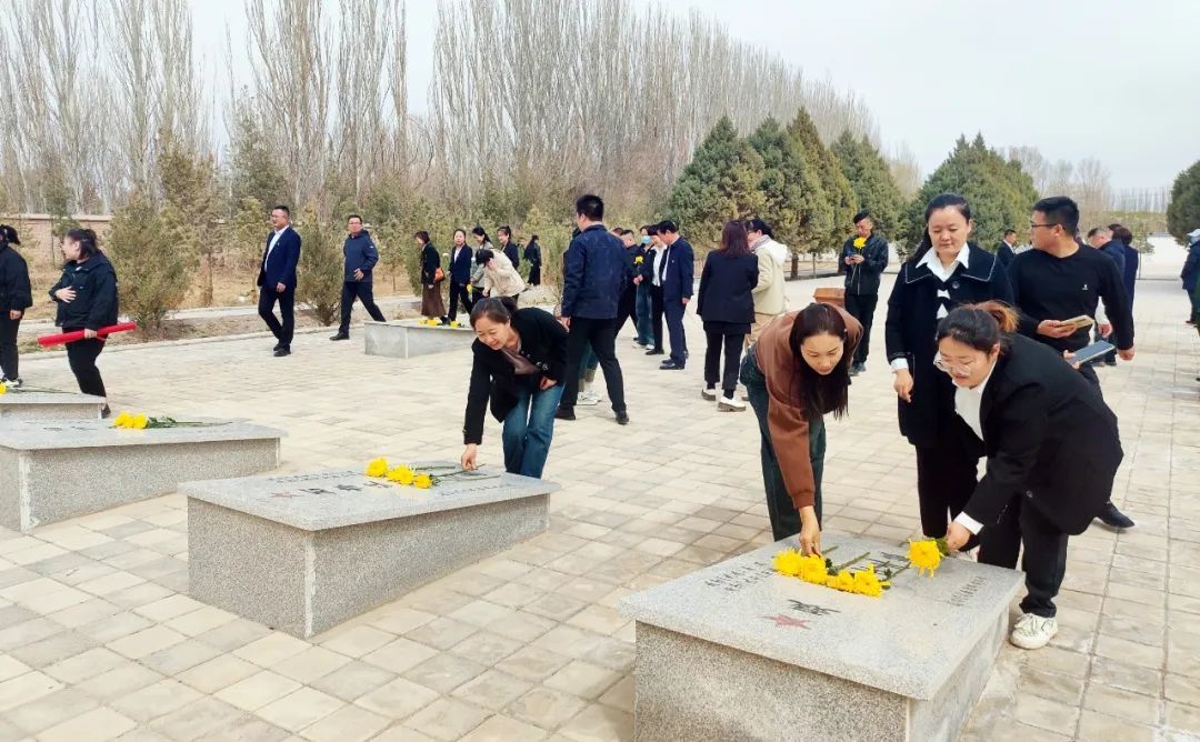 在瓜州县烈士陵园,渊泉镇疏勒社区联合常乐社区及共驻共建单位开展“缅怀革命先烈·赓续红色血脉”清明祭英烈活动,追忆烈士事迹,讲述红色故事,为烈士敬献花篮,表达对先烈的缅怀之情,汲取奋进力量。