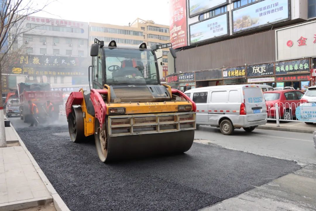 人勤春来早,维修正当时。在人民路路段,施工现场设立了施工牌、警示牌等,工作人员疏导着施工现场的交通,伴随着大型机械的轰鸣声,市政工程管理处的工人们正在将路面不规则的破损区域切割成矩形,随后将破损部分清理干净并重新铺上沥青,确保修复后的路面整齐平顺,经过修复,问题路段的路面焕然一新。