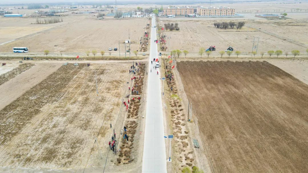 农田林网在防风固沙、保持水土、改善农田生态环境、保障农业生产条件等方面发挥着重要作用。植树现场,大家在林业技术人员指导下,铲土挖坑、培土围堰、提水浇灌,一道由新疆杨、盐松等抗逆性强的适生树种组成的农田防护林网逐渐成型。