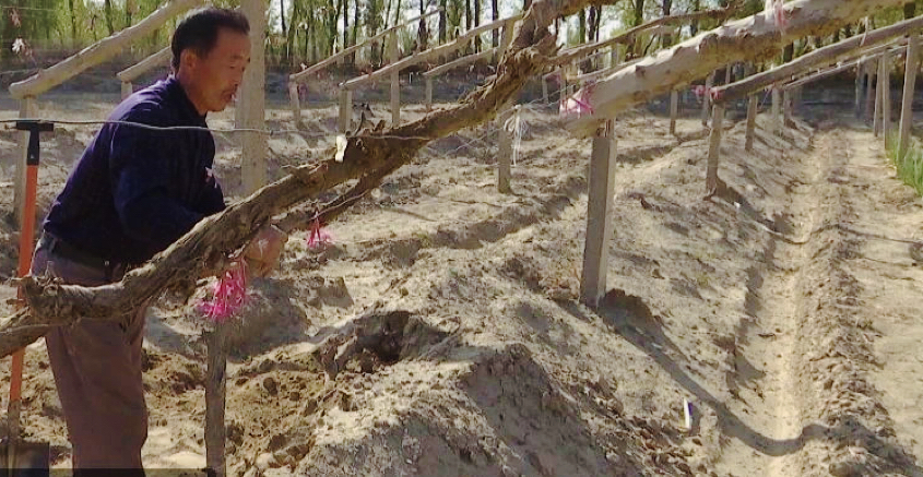这几天,羊井子湾乡大泉湾村村民康如栋忙得不可开交,他小心翼翼地去除埋在葡萄藤上的土壤,将藤蔓理顺上架,并进行清沟工作。他说,自家种植的6亩葡萄全部进入了盛果期,收入一年比一年好。