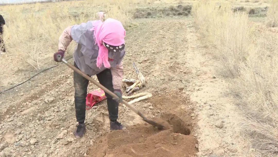 “这个种子是我们自产的种子,撒下和(梭梭树)根明年就接上了,明年后年我们就继续挖。”