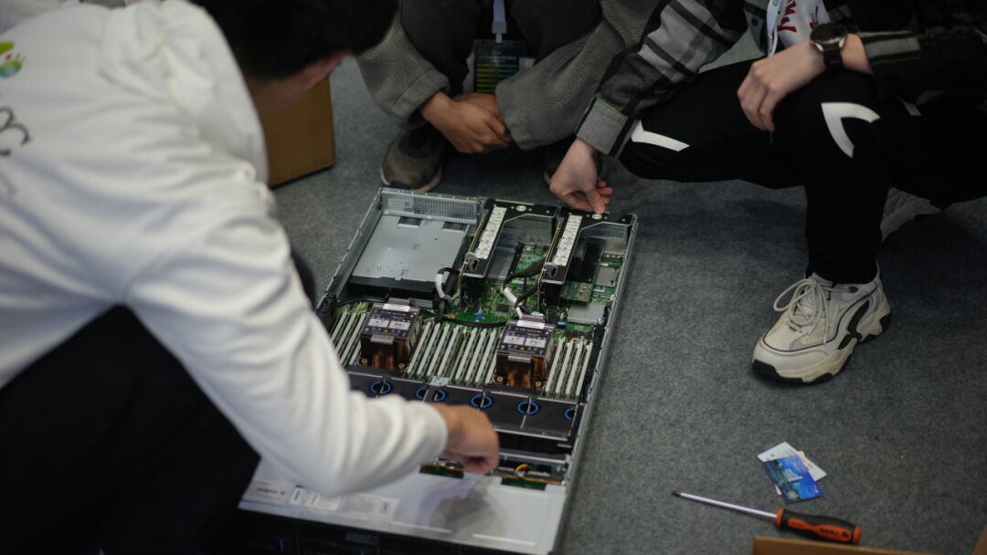 根据本次竞赛主办方的要求,每支参赛队伍需要自备比赛所需要的高性能计算加速设备。兰州大学超算中心为队员们准备了多张加速卡,但是队员们在决赛现场安装的过程中发现了更为复杂的情况。“主办方提供的服务器硬件框架与平时训练的硬件框架不相同,我们的一部分卡缺少必要的组装零件。”参赛队员胡日臻说道,“我们用了6张卡,但是实际上有个别卡还是出现了不能稳定工作的状况,这会对运算的效率产生影响。”同样的问题还出现在服务器的搭建过程中,兰州大学超算团队搭建服务器的用时比其他团队更久。“我们赛前只进行过一次服务器的拆装练习,”胡日臻说,“在比赛过程中硬件条件与在学校的练习条件不一样,这对我们造成了很多困扰。”