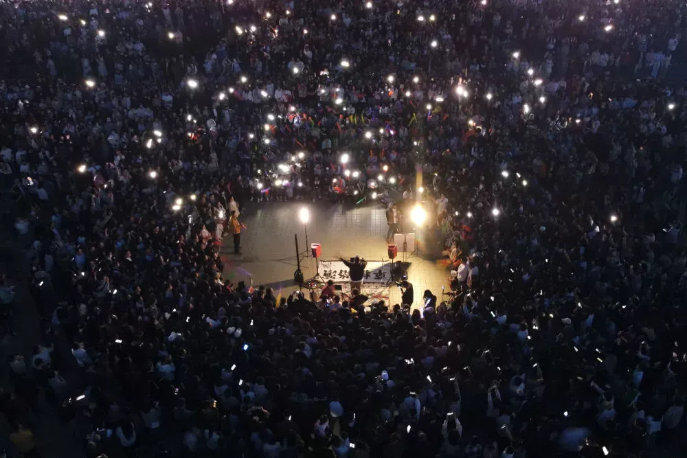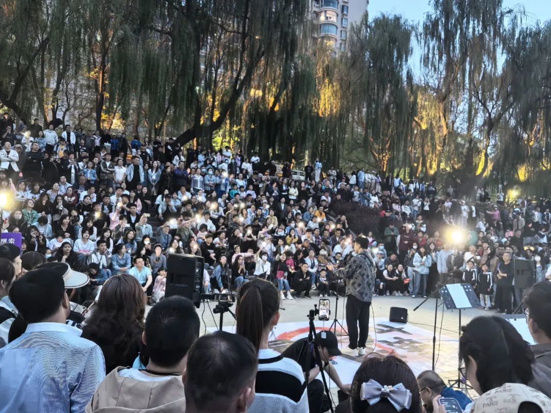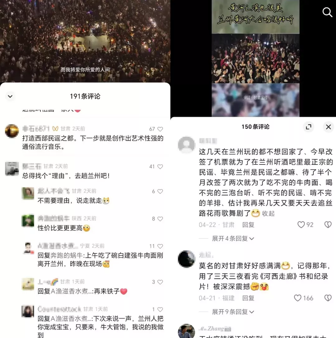 兰州黄河岸边的音乐路演现场人头攒动,人山人海。(图源:@李婧)