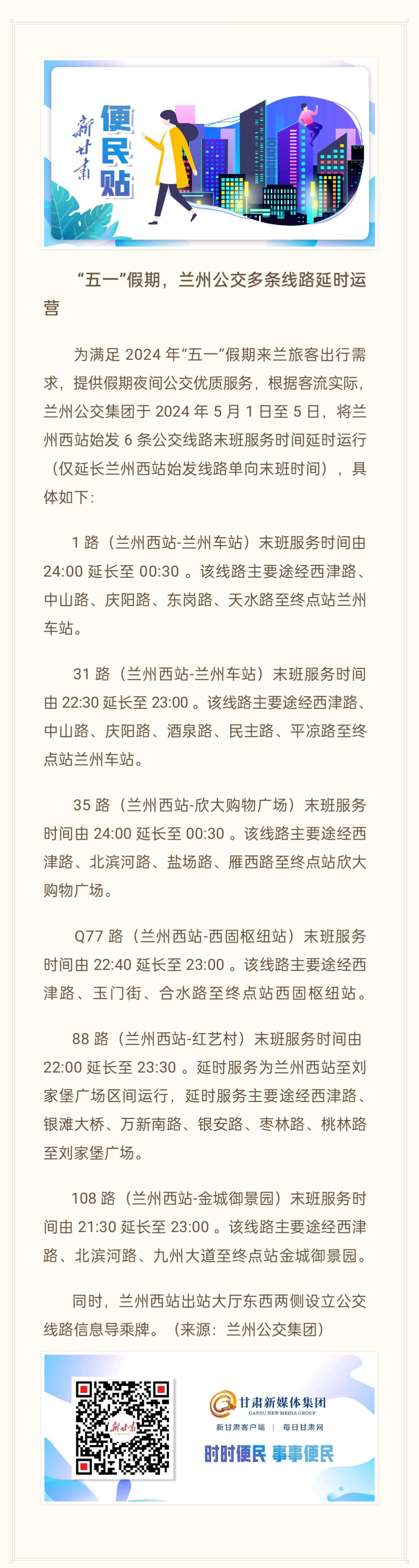 新甘肃官方公众号:“五一”假期,兰州这些公交线路延时运营→