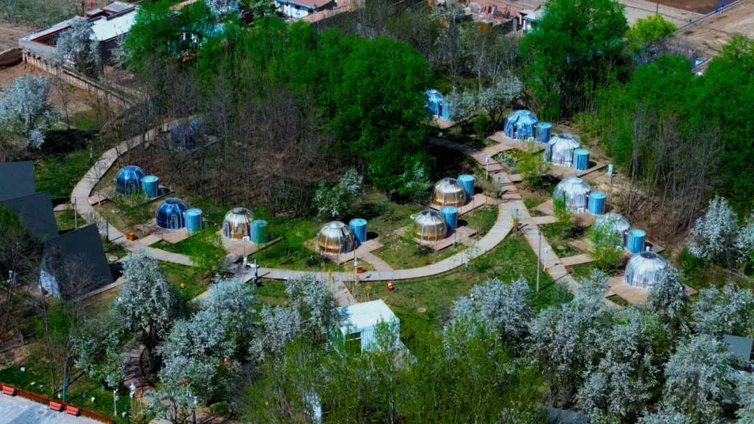 春风暖,垂柳青。漫步在树荫成行的梧桐大道,迎着和风,感受乡野之美,从春日的花草中寻到形状各异的茅草屋、泡泡屋,选一隅舒适的房屋下榻并酣然入梦,拥抱惬意的乡间时光,蓝天白云相映、绿水青山环绕、花草树木葱茏,一幅美丽乡村画卷展现在眼前。