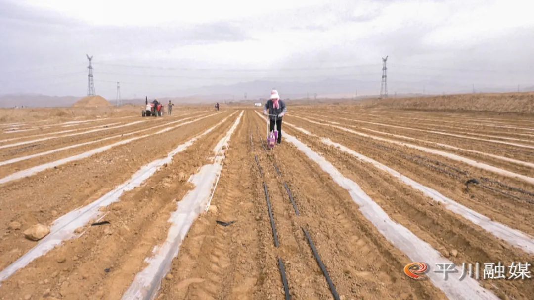 走进平川区水泉镇、宝积镇等地,旋耕机来回穿梭在田间平整土地,播种机在平整好的地块里播种、施肥、覆膜,农户们分工合作,忙碌在田间地头,一片热闹忙碌的景象,一垄垄覆好的地膜在阳光照射下闪着银光,形成一道独特的乡村风景线。