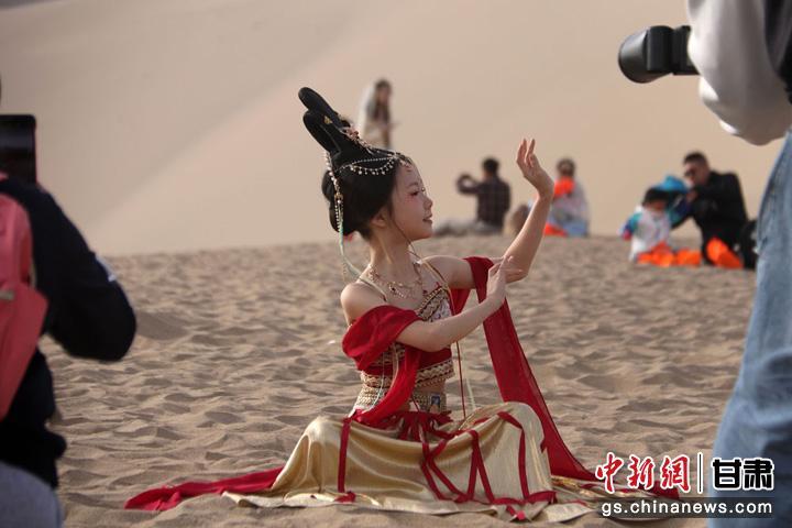 “五一”假期,甘肃省敦煌市迎来旅游高峰,旅游市场“热辣滚烫”。众多游客走进古城敦煌,感悟敦煌文化,欣赏大漠风光,体验丝路风情。据敦煌市文旅部门统计数据显示。“五一”假期,敦煌市接待游客55.19万人次,同比增长45.89%;实现旅游收入逾4.5亿元,同比增长37.47%。(张晓亮 魏佳秀)
