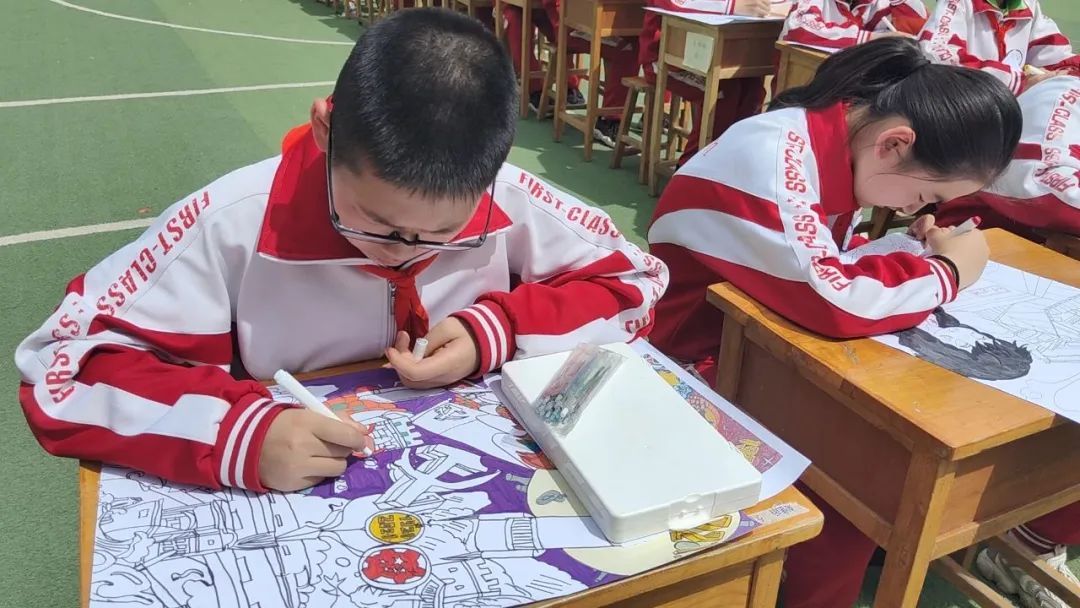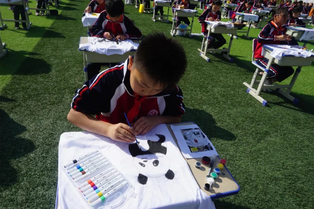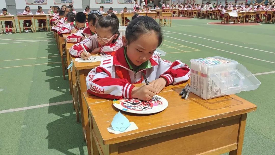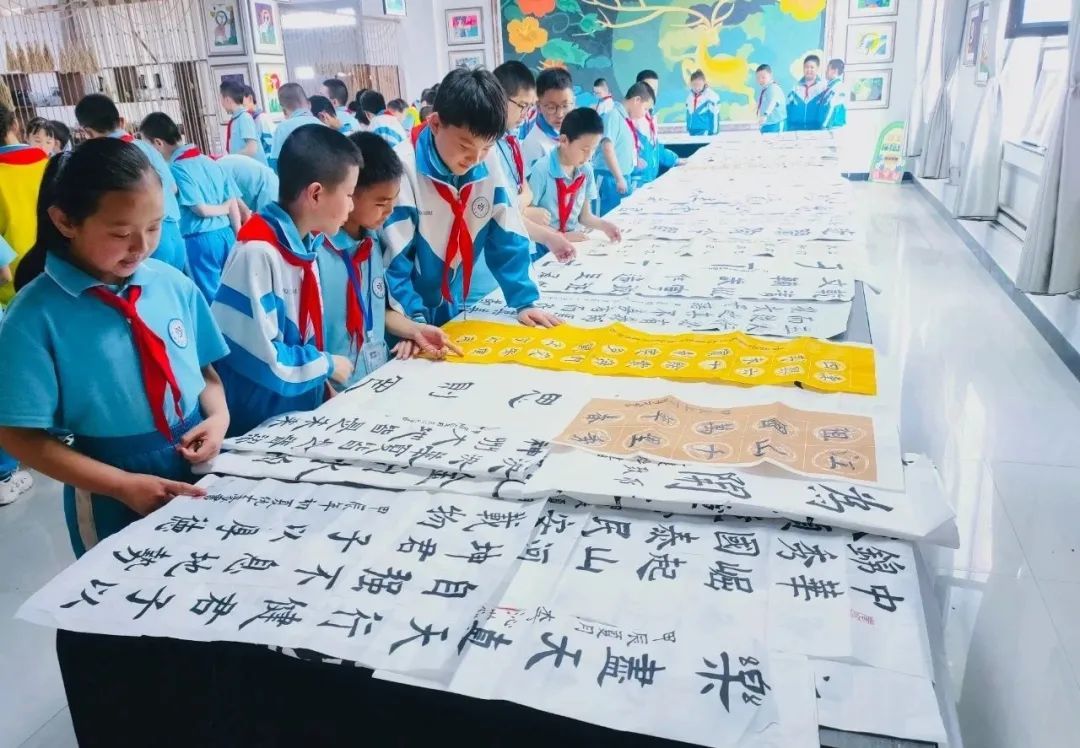 让“美”在校园流动,在白银区第十三小学的走廊、楼道、操场上,一件件精美的手工艺术作品,成为了校园里一道绚丽多姿的风景线。学校以一场美育特色作品展拉开了校园文化艺术月的帷幕,144名学生组成巨大的美育方阵,现场进行麻绳、团扇、国画、书法及各类手工作品等创作,为学生们提供一个更为广阔更为精彩的艺术世界。