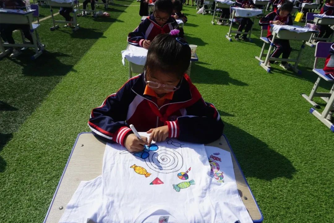 一件纯白T恤,加入自己的丰富想象,在上面绘制图案、调整颜色,一件充满特色的服装便出现在眼前。白银区第七小学举办的“文化衫”创意展示活动中,孩子们在美术老师的指导下插上想象的翅膀,用印、贴、画等方法对文化衫进行设计制作,勾勒出风景、人文、环保、卡通等图案,每件文化衫在同学们的画笔下显得既创意十足又彰显个性。孩子们在自主创作的过程中感受设计文化衫的乐趣,充分展示自己独特的艺术才华。