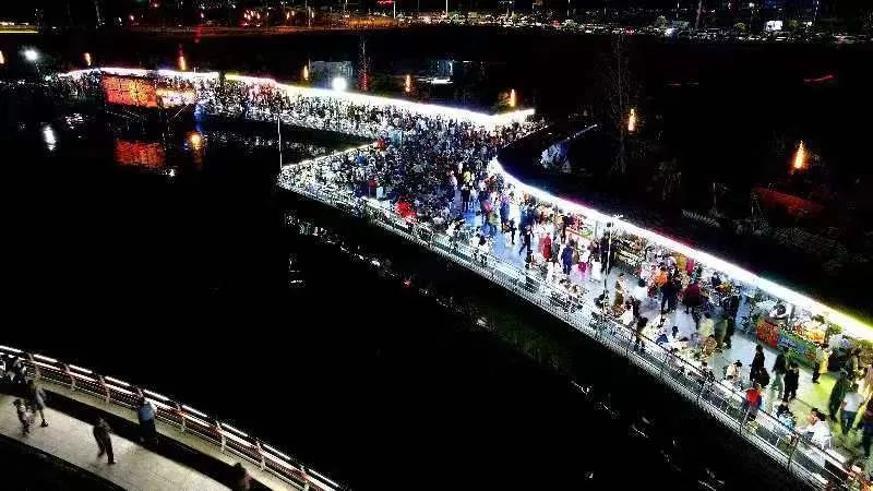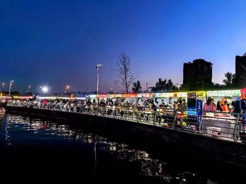 在夜市的热闹氛围中,各类人群汇聚一堂。年轻的情侣手挽手漫步在人群中,不时地交谈着,脸上洋溢着幸福的笑容。家长们带着孩子穿梭在摊位间,品尝着各种美食,享受着难得的亲子时光。还有那些三五成群的年轻人,他们在皓月桥下,围坐在摊位前,如同李白“举杯邀月”般,与同伴畅饮,畅谈人生理想。
