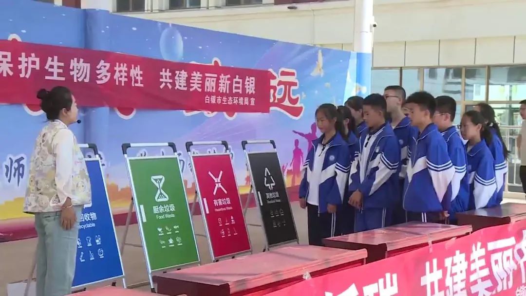 在白银湘银实验学校,内容丰富的展板前,工作人员正在耐心细致地给孩子们讲解。“绿色低碳 美丽中国”的环保意识潜移默化地“种”进了学生心里。特别是在节能低碳环保知识问答、宣传小礼品发放环节,孩子们踊跃参与,进一步加深了对绿色低碳理念的认识和理解。