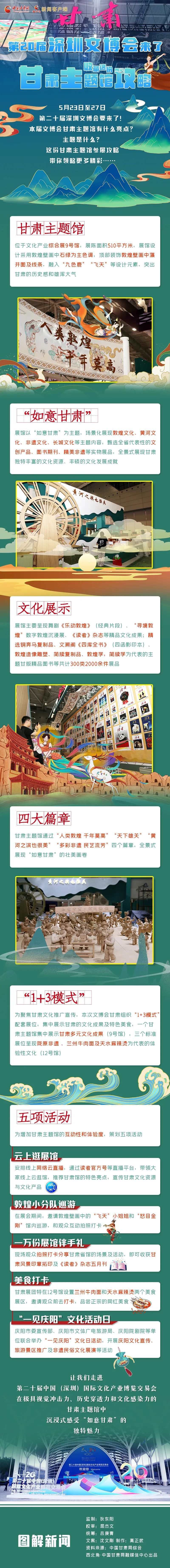 5月23日,第二十届中国(深圳)国际文化产业博览交易会在深圳国际会展中心隆重开幕。当天,以“如意甘肃”为主题的甘肃展馆也随之揭开神秘面纱,正式与四海宾朋见面。