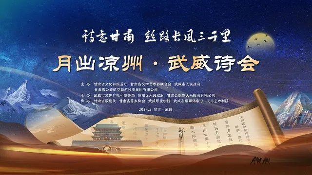 由甘肃省文化和旅游厅、甘肃省文学艺术界联合会、武威市人民政府、甘肃省公航旅集团联合主办的月出凉州·武威诗会,是“诗意甘肃·丝路长风三千里”文旅诗会系列的第二场展演宣传活动,开幕式演出由室外群众文化展演活动和室内主题文艺演出构成,将以诗歌朗诵、情境表演、非遗展示、乐舞和戏曲等多种艺术形式,结合“万人吟诵凉州词”干部群众文化展演活动,聚焦“凉州词”这一蜚声海内外的文化符号,将带领观众领略穿越历史烟云的“武功军威”、聆听凉州贤孝吟唱霍去病威震河西的历史故事,感受古老攻鼓子的刚劲豪迈,在古今诗词里沉浸体验文学之美。精彩的现场演出与身临其境的舞台背景相得益彰,让观众徜徉于凉州大地上的中国旅游标志铜奔马、“石窟鼻祖”天梯山石窟、稀世珍宝西夏碑、“陇右学宫之冠”武威文庙、罗什寺塔等丰厚的历史文化遗产之间。整场活动将采用线上线下相结合的呈现方式,扩展诗歌艺术展现空间,丰富审美感受,通过自媒体、融媒体与移动终端的深度融合,创新诗歌线上呈现和互动方式,发挥线上移动化、社交化、互动化等优势,与时俱进,吸引更多年轻人,扩大受众规模,打造新时代“诗意凉州”。
