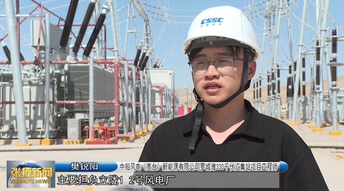 中船风电(高台)新能源有限公司罗城滩330千伏汇集站项目工程师樊锐阳:“主要担负立陇1、2号风电厂,高台盐池滩甘电投风电场升压上网及主网调平、调峰等部分供电任务,现共带负荷约为30万千瓦。”