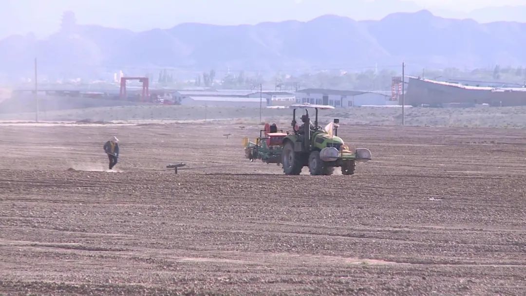 “我现在所在的位置是平川区西格拉滩万亩食葵种植基地。随着春耕接近尾声,现场几十辆精量播种机正在为春耕做最后的冲刺。大家可以看到铺设滴灌带、播种、施肥等作业都是一气呵成,新的希望正在这片黄土地上冉冉升起。”