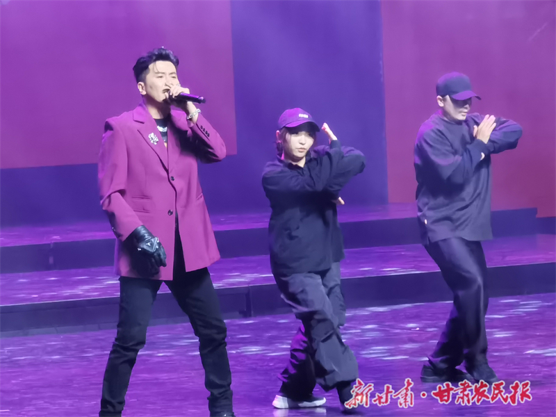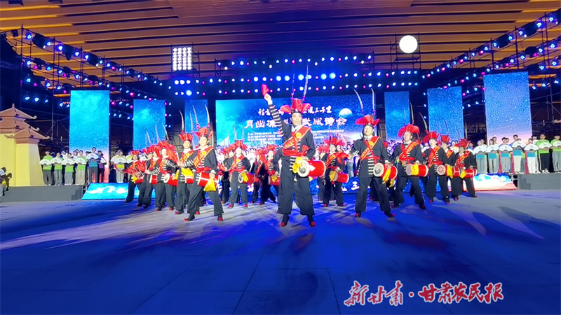 诗会在600余名高校师生共同朗诵的不同时代《武威赋》拉开了演出帷幕,凉州深厚的历史文化底蕴和独特的自然风光跃然于舞台之上;“远游武威郡,遥望姑臧城,车马相交错,歌吹日纵横”非遗传承人贾旭峰用一首凉州贤孝讲述了霍去病封狼居胥的伟业,威武雄壮的攻鼓子声中,涉流沙兮四夷服的大汉雄风跃然眼前。