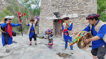 萌娃和羌族羊皮鼓舞