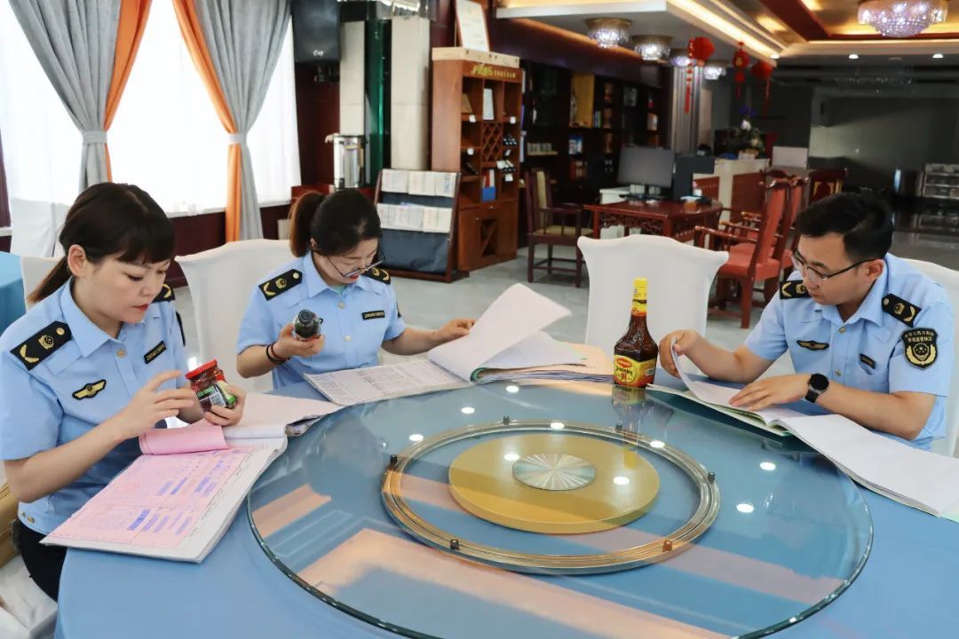 在监考老师定点接待酒店(白银饭店),执法人员先后来到就餐大堂、厨房操作间、食品原料储藏间等处,详细查看食品安全信息公示栏、从业人员健康证、食谱等,并对原料进货查验、餐饮具清洗消毒、食品质量、食物加工场所环境卫生、食品留样等进行检查,以最高的标准、最严的要求、最好的状态做好各项准备工作,全力为广大教师保驾护航。