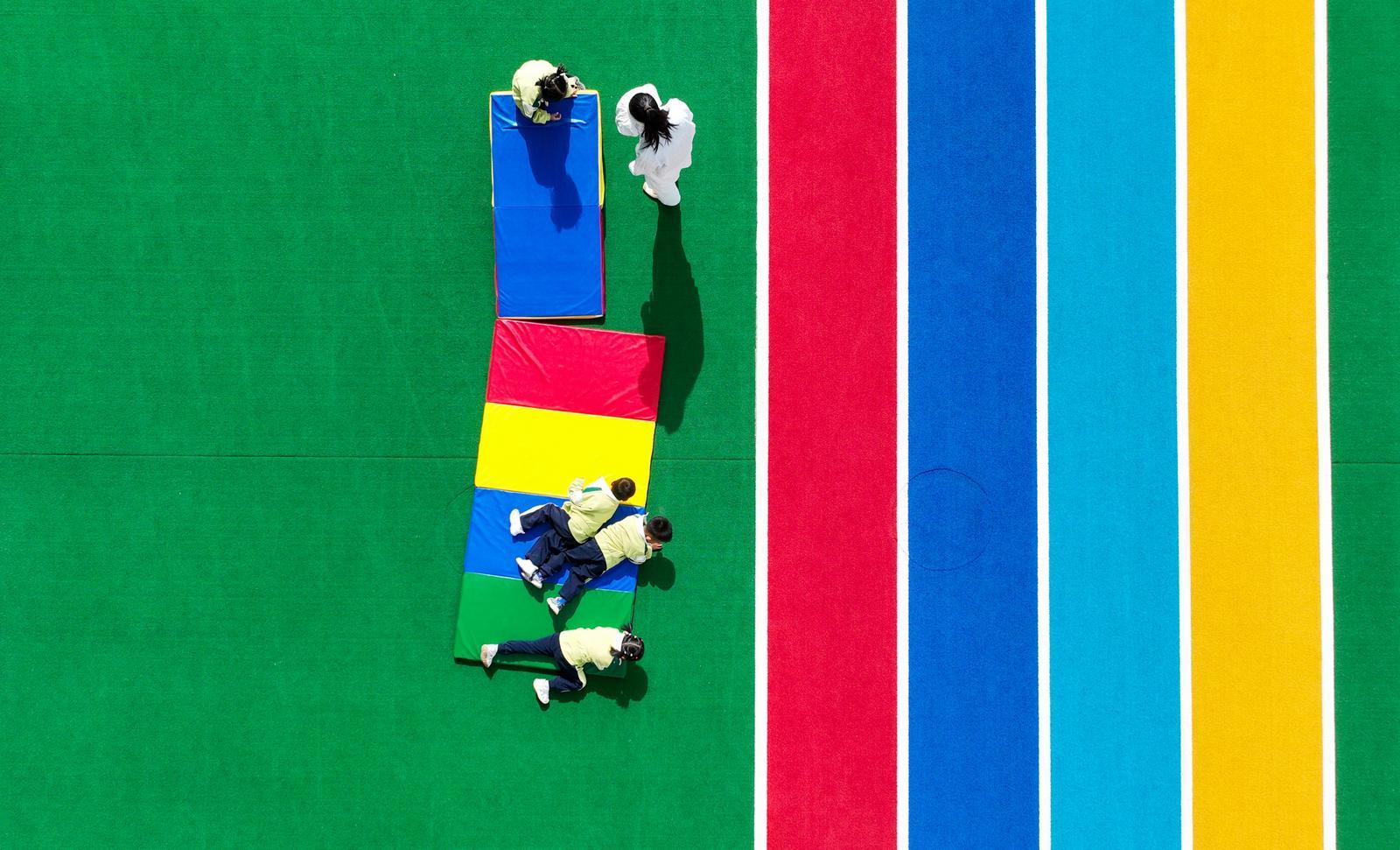 近日,走进金塔县第三幼儿园,孩子们在老师的带领下有序进行各项体能活动,钻、爬、走、跑、跳……孩子们尽情地在操场上舒展身体,释放童真活力,畅享运动快乐。