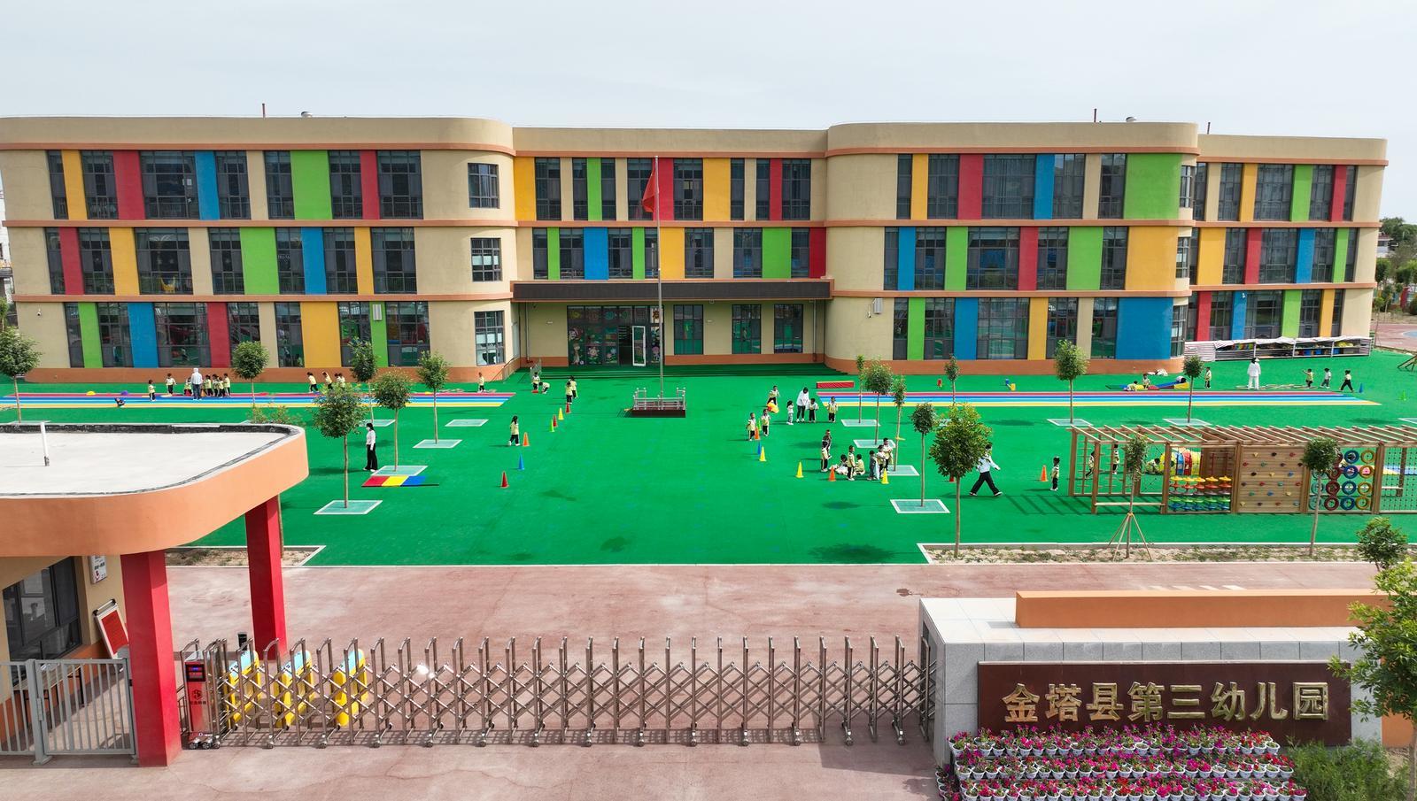 金塔县第三幼儿园项目于2022年8月开工,2023年8月建成投入使用,总投资3906万元,占地面积2.73万平方米,建筑面积5680平方米,设12个教学班,360个学位,设施布局合理。