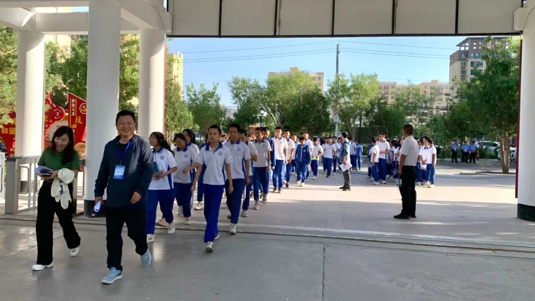 上午七点半,在瓜州县第二中学考点外,工作人员已经全部到位,考生们在考务人员的引导下有序进入考场。