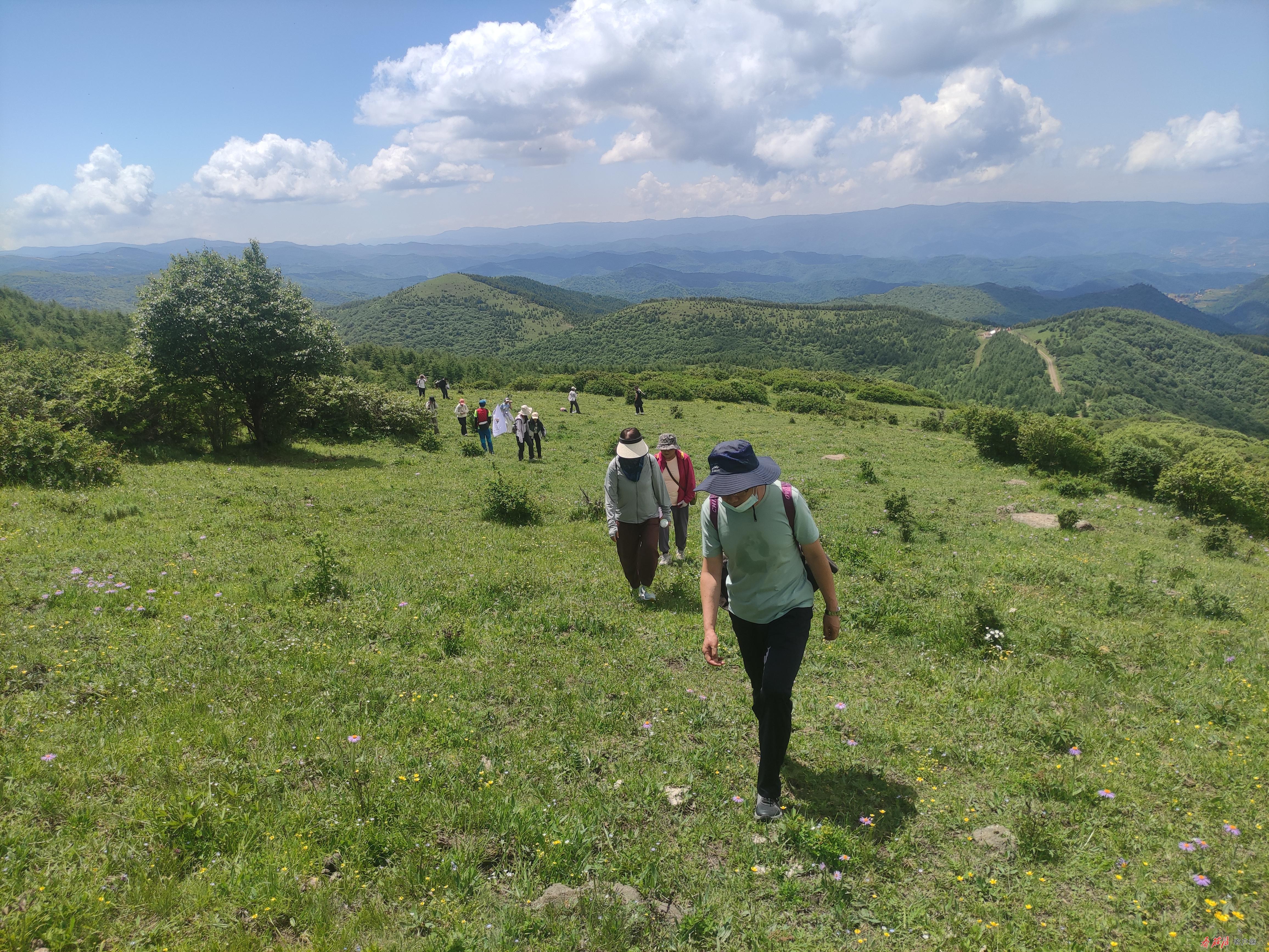 “路上山花烂漫、风景宜人,心情特别放松,今天虽然天气特别晴朗,但是小风一吹又特别的清凉,希望秋天的时候来关山观看朝那湫的美景。” 银川市徒步登山协会会员雷沁说。