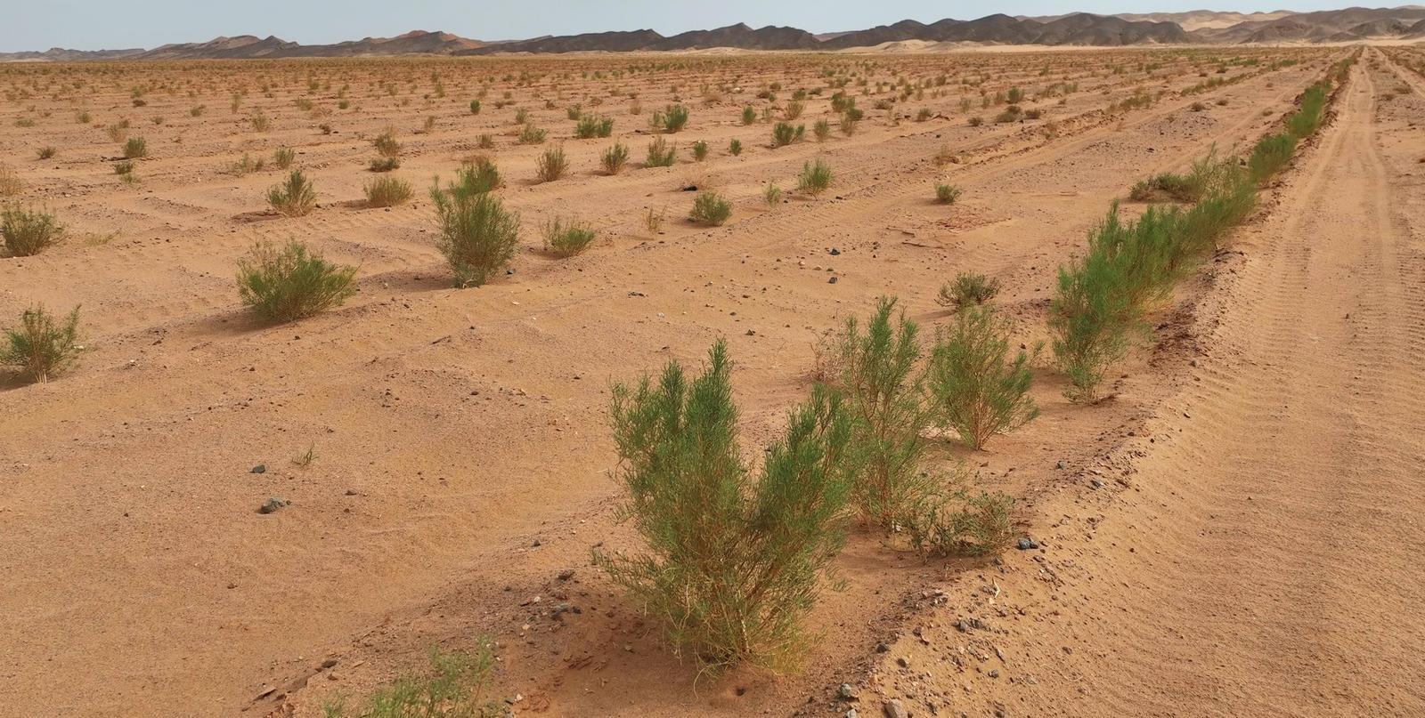 利用科技手段,让树木成活率显著提升。盛夏时节,在金塔县石梁子和红墩子国家沙化土地封禁保护区腹地,数千亩土地被灰绿色的梭梭林覆盖。而在去年初,这里还是一望无际的沙丘。去年4月,当地林业部门借助卫星导航系统,开垦树坑,种上了整齐的梭梭树。经过一年多的管护,目前苗木成活率达80%以上。