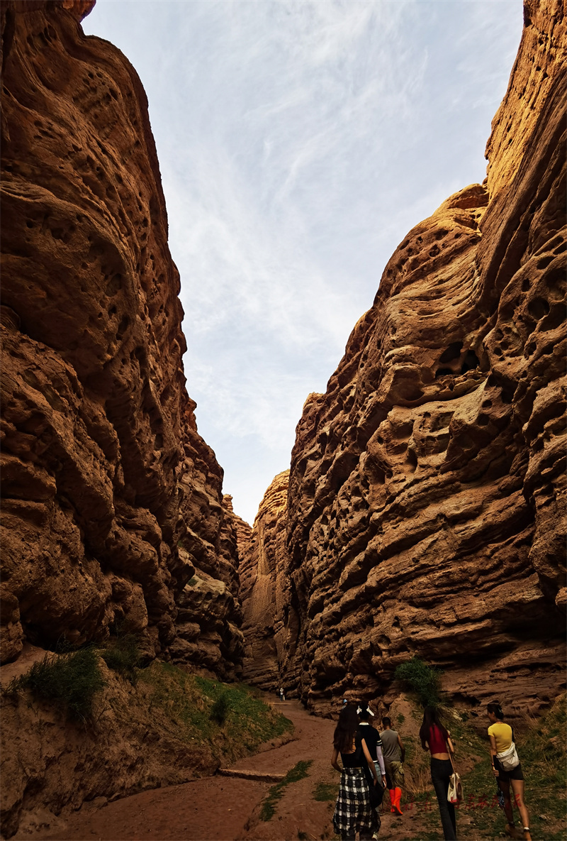 有水的记忆,便有水的灵气。平山湖大峡谷以流水沟壑为基本特征,山势低且平缓,以沙石山为背景,主要以红色和赭红色为主色调,色彩略显灰暗。多呈圆锥或柱状,造型奇特,给人一种悲壮苍凉的美。