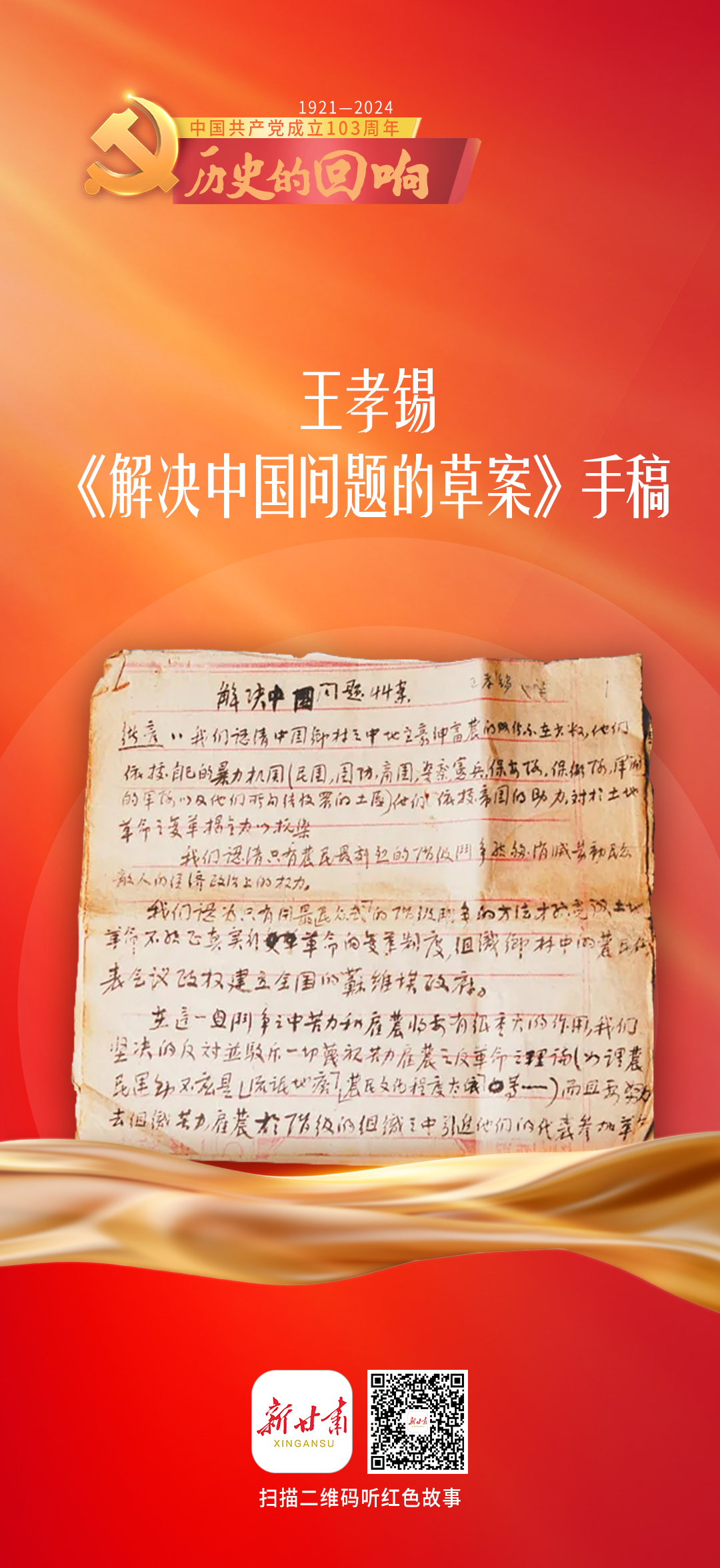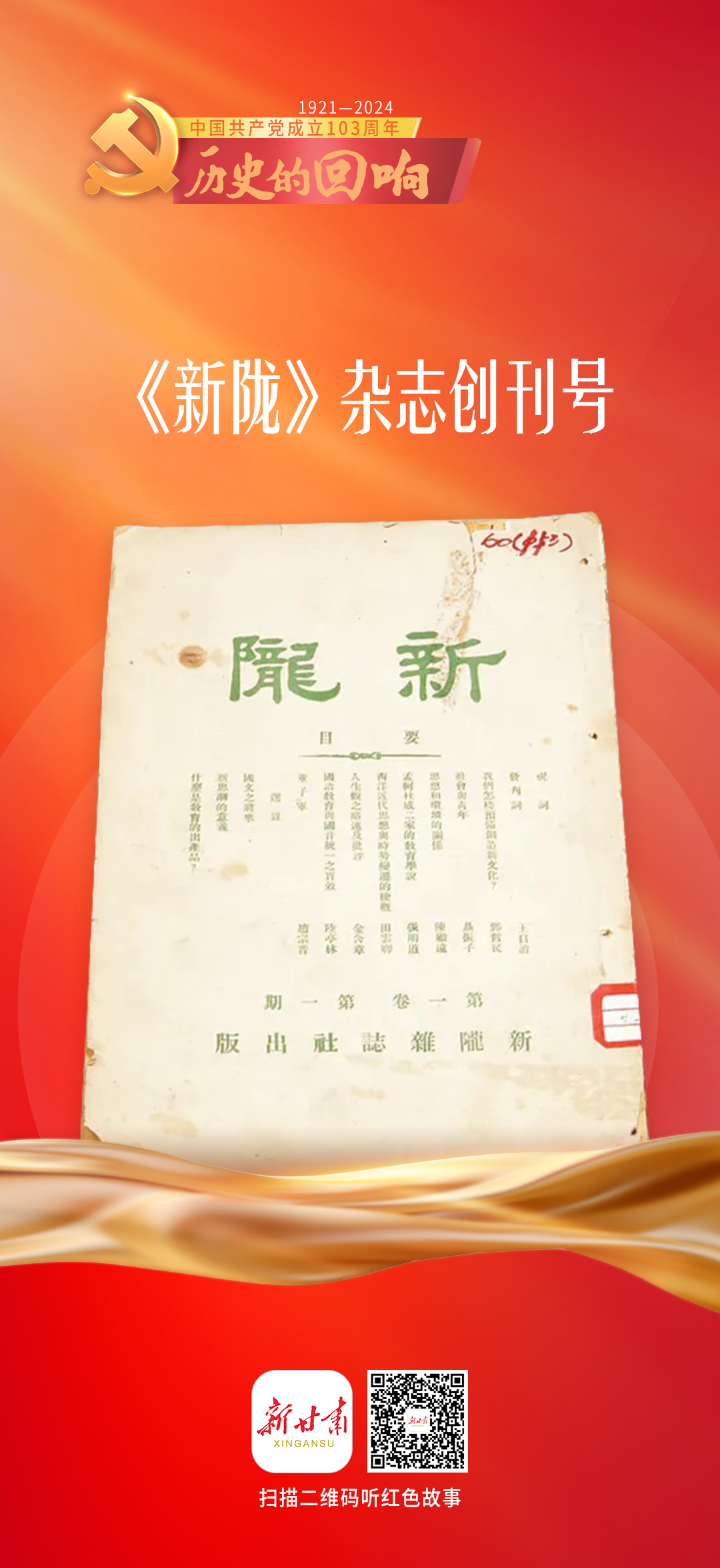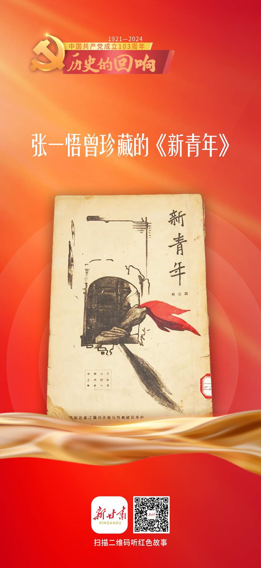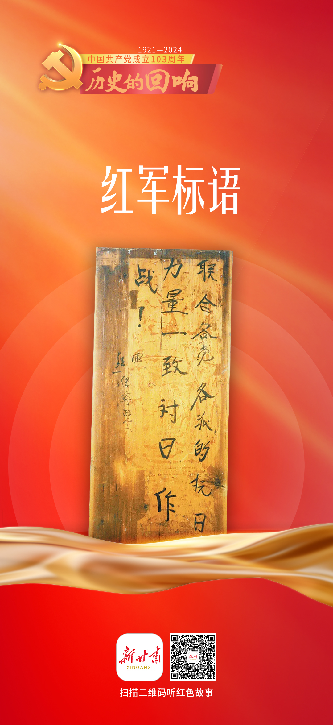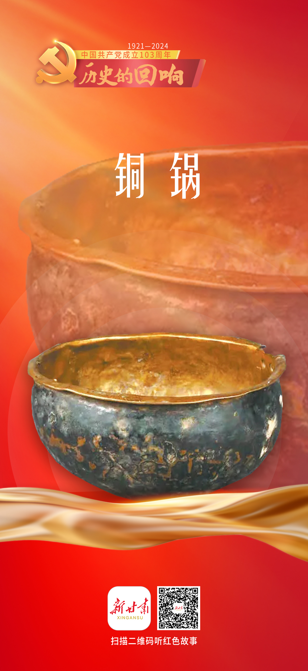今天(7月1日)是中国共产党成立103周年,新甘肃客户端特别策划推出系列有声海报《历史的回响》8期,让我们一起聆听红色文物背后感人至深的热血故事,共同追忆往昔光辉岁月。