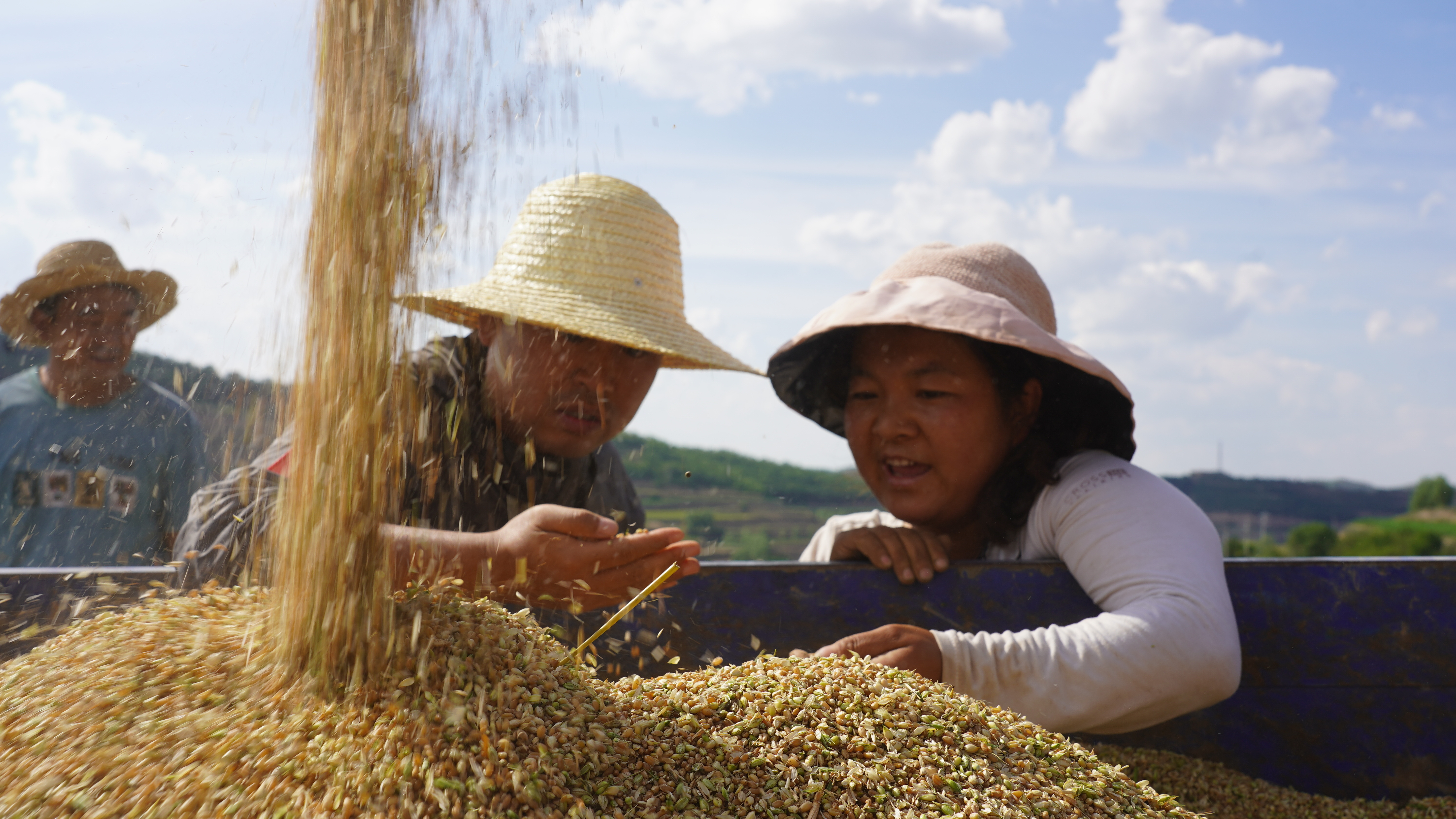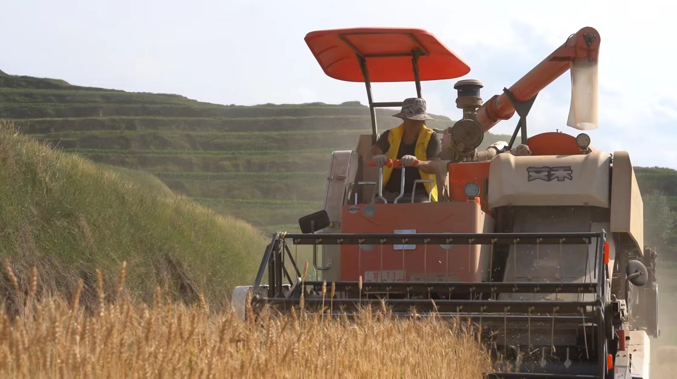 “静宁县供销社组织的人帮我们收割小麦,我们家种的十五六亩小麦今天就都收割完了,亩产量在300到400斤之间。”看着自家丰收的小麦,原安镇姚河村村民秦改梅洋溢着丰收的喜悦。