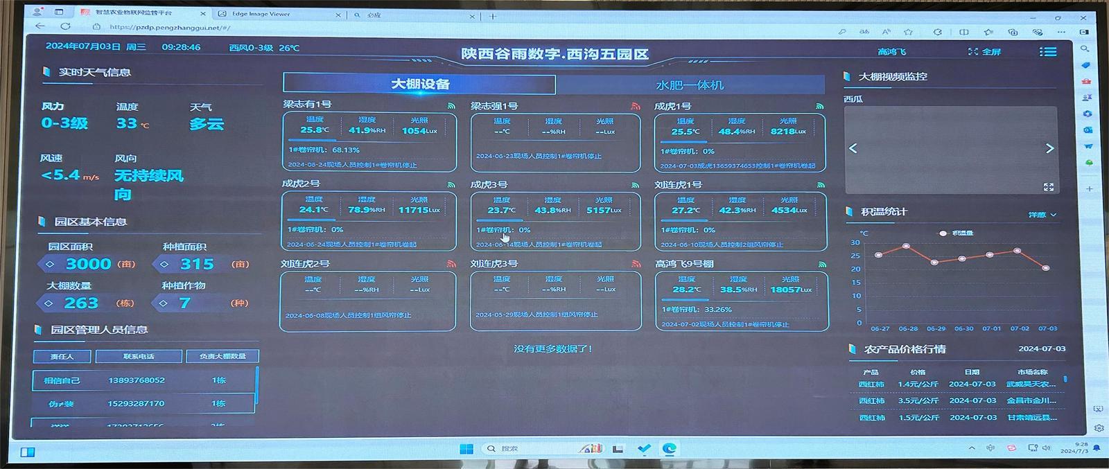 “棚掌柜”为现代农业装上了“智慧大脑”,实现了科技与农业的“双向奔赴”,新质生产力在这里魅力尽显。行走在温室大棚内,细心的你会发现这里藏着许许多多的“机关”,覆膜下面的表层土壤里插着温湿度、PH值传感器,空中还悬挂着视频摄像头、空气指数检测器……这些传感器,可以实时监测温度、湿度、光照等数据,最终汇总到控制中心,打开显示屏就能读取土壤墒情、肥料浓度等相关信息。