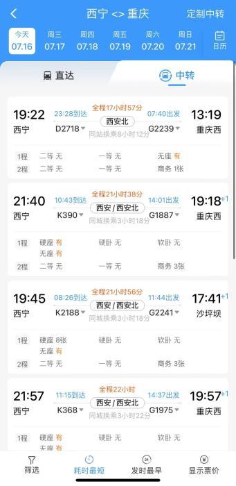 记者在12306软件上看到,7月16日、17日两天,兰州、西宁、乌鲁木齐等城市经兰渝线前往成都、重庆的直达车票依然查询不到。但记者发现,如果有通过铁路出行计划的旅客,可以选择在西安、西安北车站中转,经宝成线等线路前往成都、重庆。有相关出行计划的旅客请提前安排行程,以免延误。