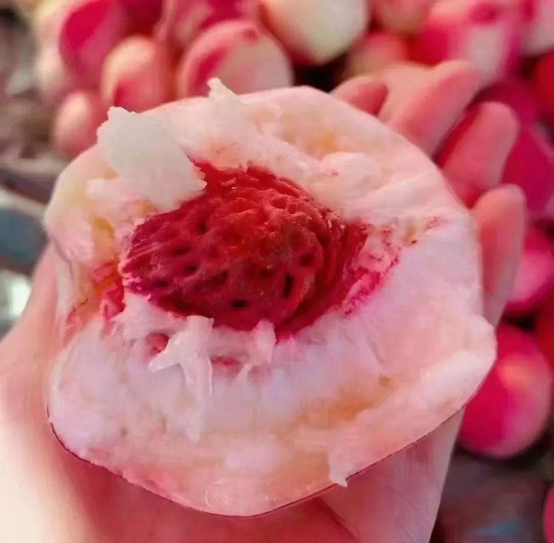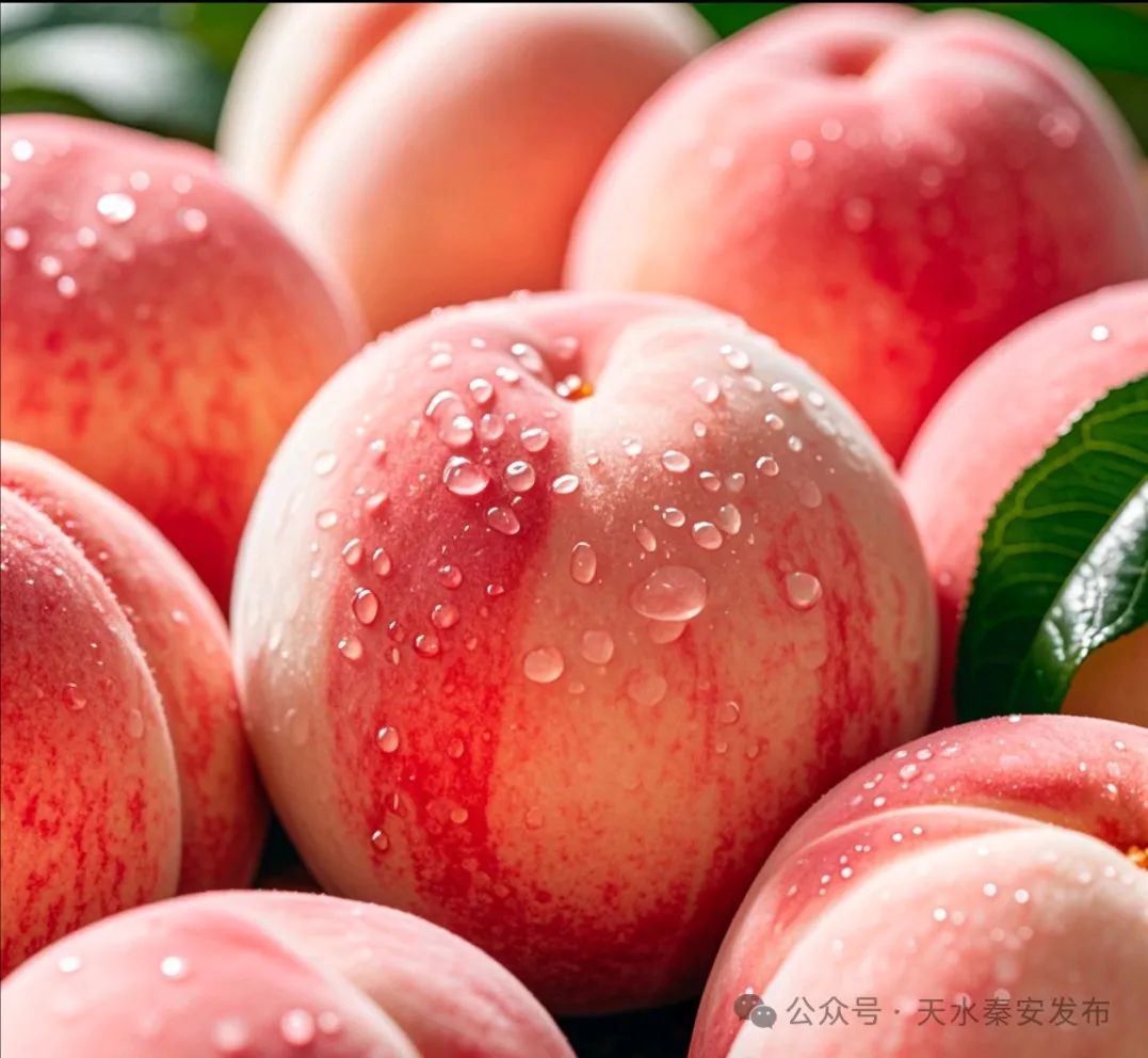 秦安蜜桃外观呈鲜艳的桃红色,果形圆润,平均单果重约150-200克。果皮光滑细腻,果肉呈乳白色,质地紧实而多汁,口感细腻,甜中带微酸,风味独特。