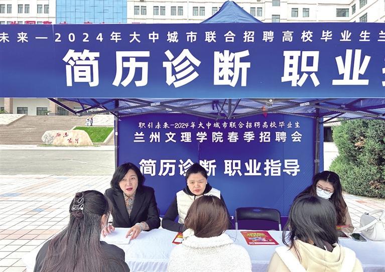 兰州市人社部门梳理我市优质重点企业名录,按照甘肃政法大学、兰州文理学院等不同高校专业设置与院校需求,归集适配性强的岗位,组织企业带岗进校园组团揽才,开展专场招聘活动。通过“线下+线上+直播带岗”的招聘方式,让高校毕业生足不出校就能了解企业用工需求,与企业工作人员现场就工作内容、薪资待遇、工作环境等问题进行咨询洽谈,不断提升高校毕业生求职能力,促进人才供需有效适配。