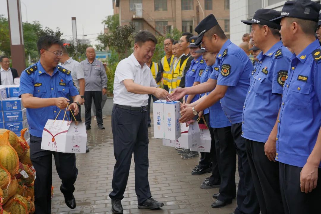 副市长、区委书记张恒山一行带队前往金昌市城市基础设施调度服务中心,向城管队员、市政工程建设队员等城市建设管理战线的广大干部职工送去慰问。