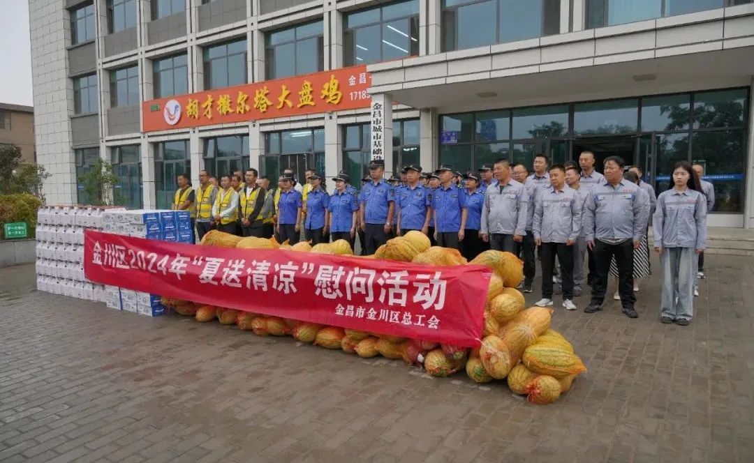 张恒山代表区委、区人大、区政府、区政协向广大城市建设者表示衷心的感谢和慰问。他说,近年来,金川区积极争创全国文明城市创建示范区,深入实施城市更新补短板项目,接续推进“微小细”民生工程,全面加强城市精细化管理,城市功能更加完善、城市环境更加靓丽、城市品质更加宜居。这些成绩的取得,离不开广大城市建设者们的默默耕耘和辛勤付出,特别是连日来,天气炎热,你们战高温、斗酷暑,用实际行动诠释了城市建设者的责任与担当。衷心地感谢城市建设者们的辛勤付出,希望你们一如既往地发扬优良作风,立足岗位、接续奋斗,为建设幸福美好家园做出新的更大贡献。各级工会组织要把防暑降温工作作为夏季的重点工作来抓,高度重视职工的劳动保护和健康权益,宣传好防暑降温常识和实用方法,发挥好户外劳动者驿站功能作用,确保广大职工健康工作、舒心工作。